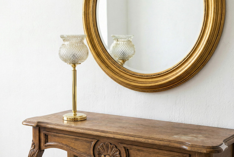آباژور برنجی مدل تولیپ با حباب قدیمی